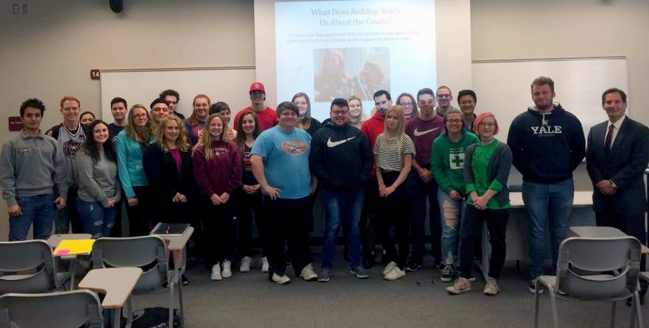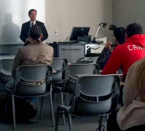 22 March 2018SPRINGFIELD, Mo. – Judge Jason Brown, a circuit judge in the 31st Judicial Circuit (Greene County) took over teaching duties last night in the “Criminal Law and the Courts” class at Missouri State University in Springfield.